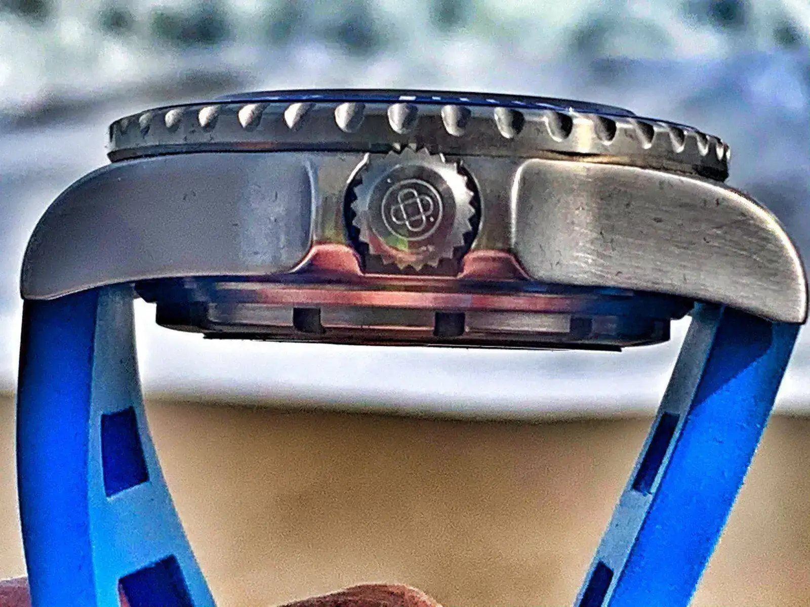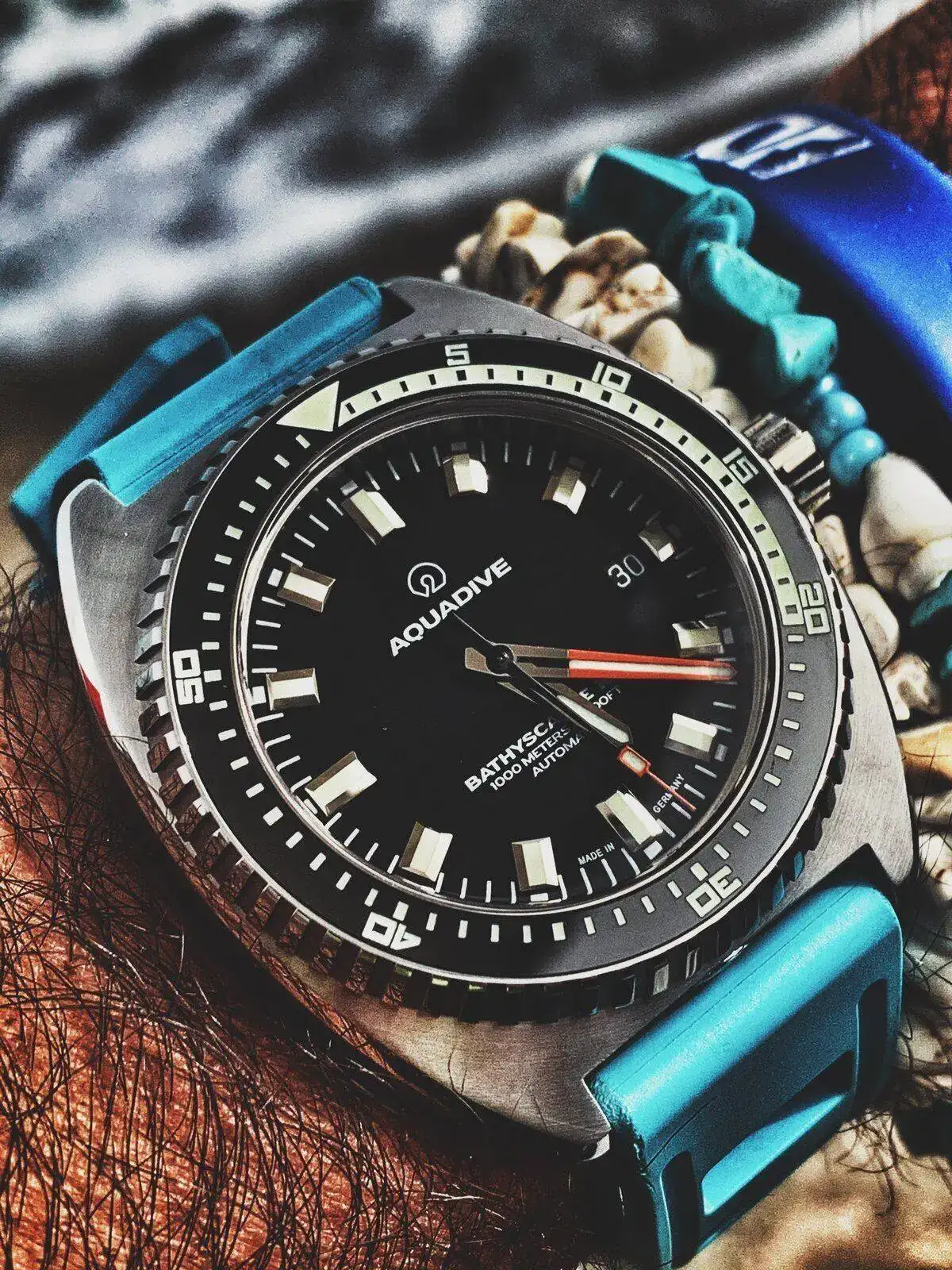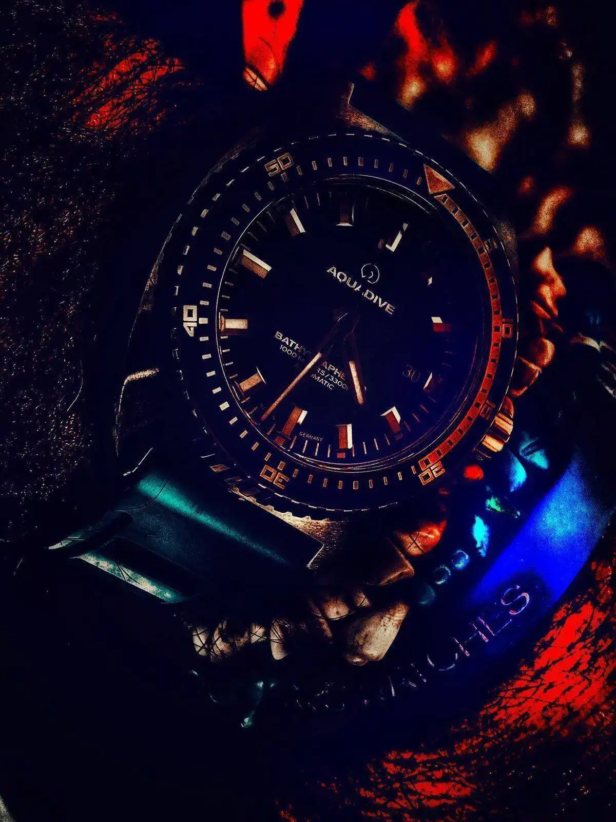 martes. Aquadive BathyScaphe 1000mt. Más profundidad que el zixen pero caja aún Max contenida Aquí con caucho celeste