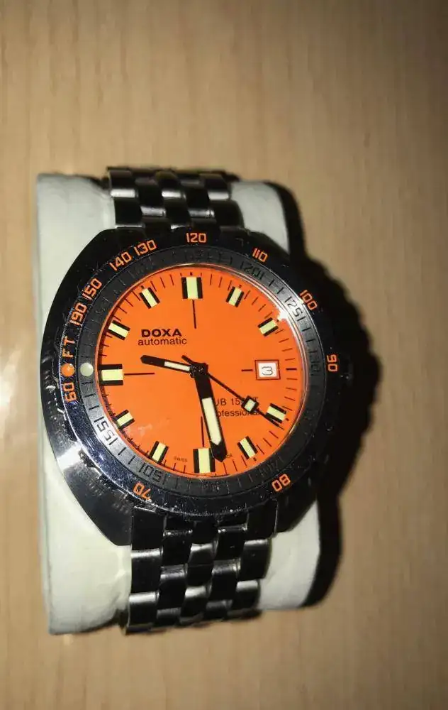 Doxa 1500 profesional, la última entrada hasta ahora. El color de la esfera y sus cambios con la luz y el brazalete algo diferente al de granos de arroz lo que más me gusta.