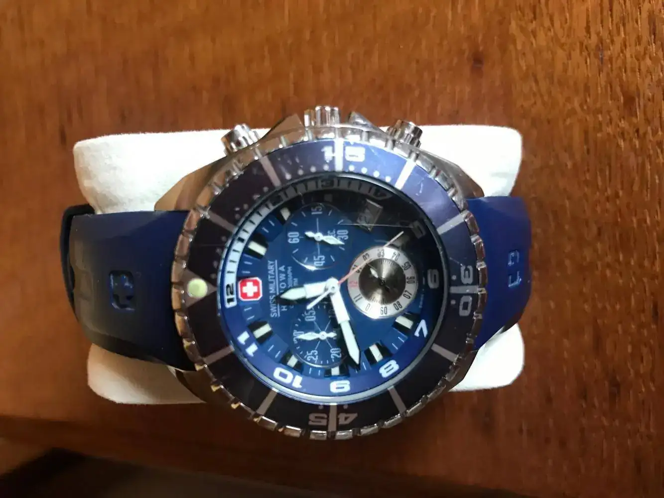 Swiss Militariy. Mi primer diver, único crono y único cuarzo que tengo. Ahora lo uso poco, pero hace unos 10 años recibió bastante tralla. El bisel tiene el mismo problema que el Certina: es muy bajo y se manipula mal.