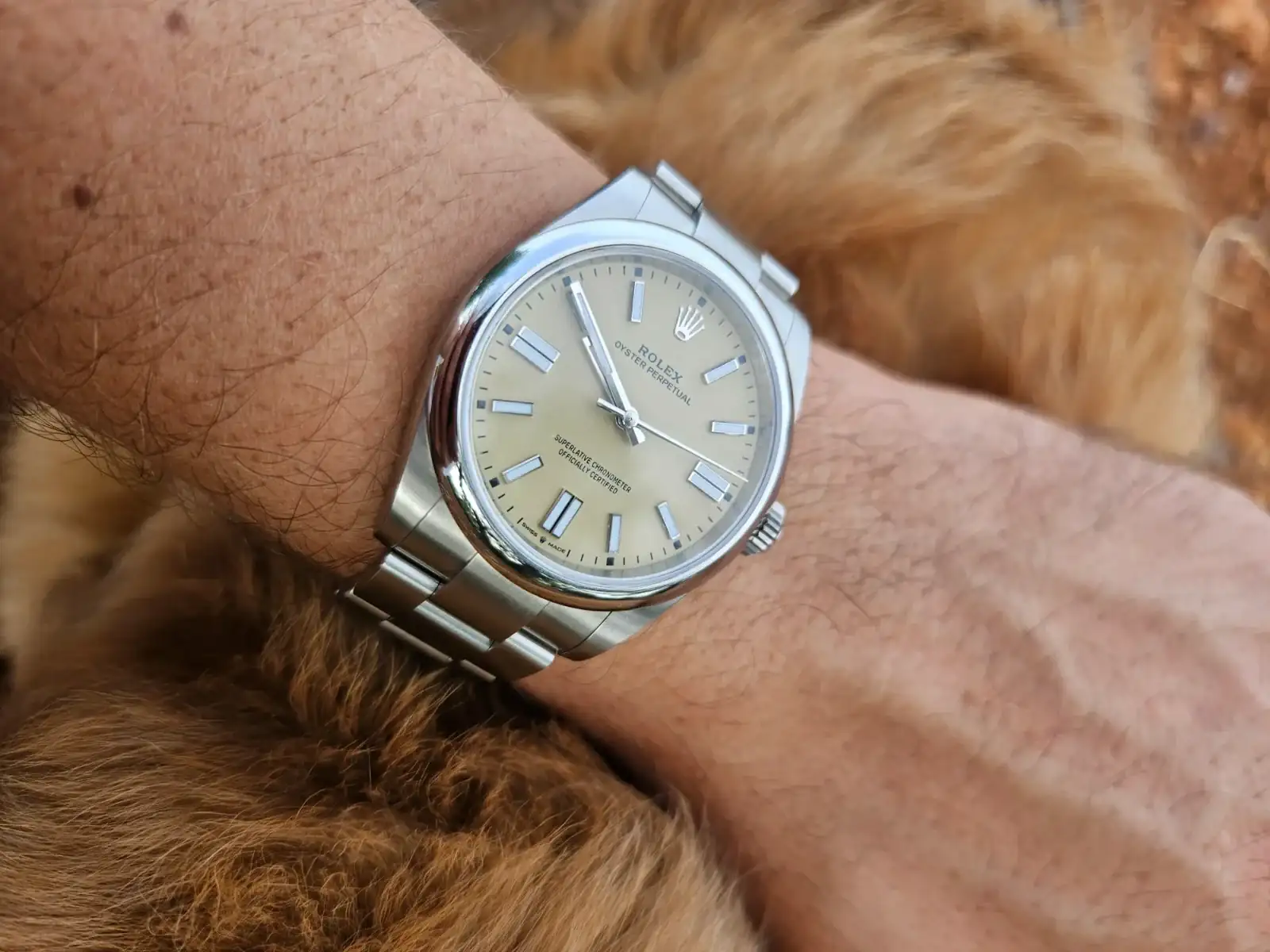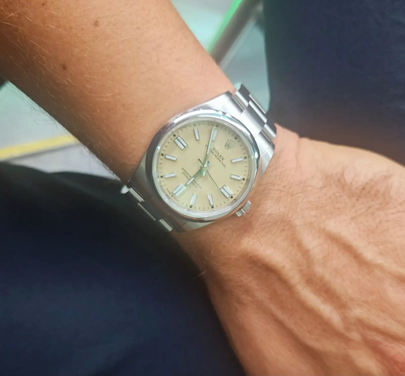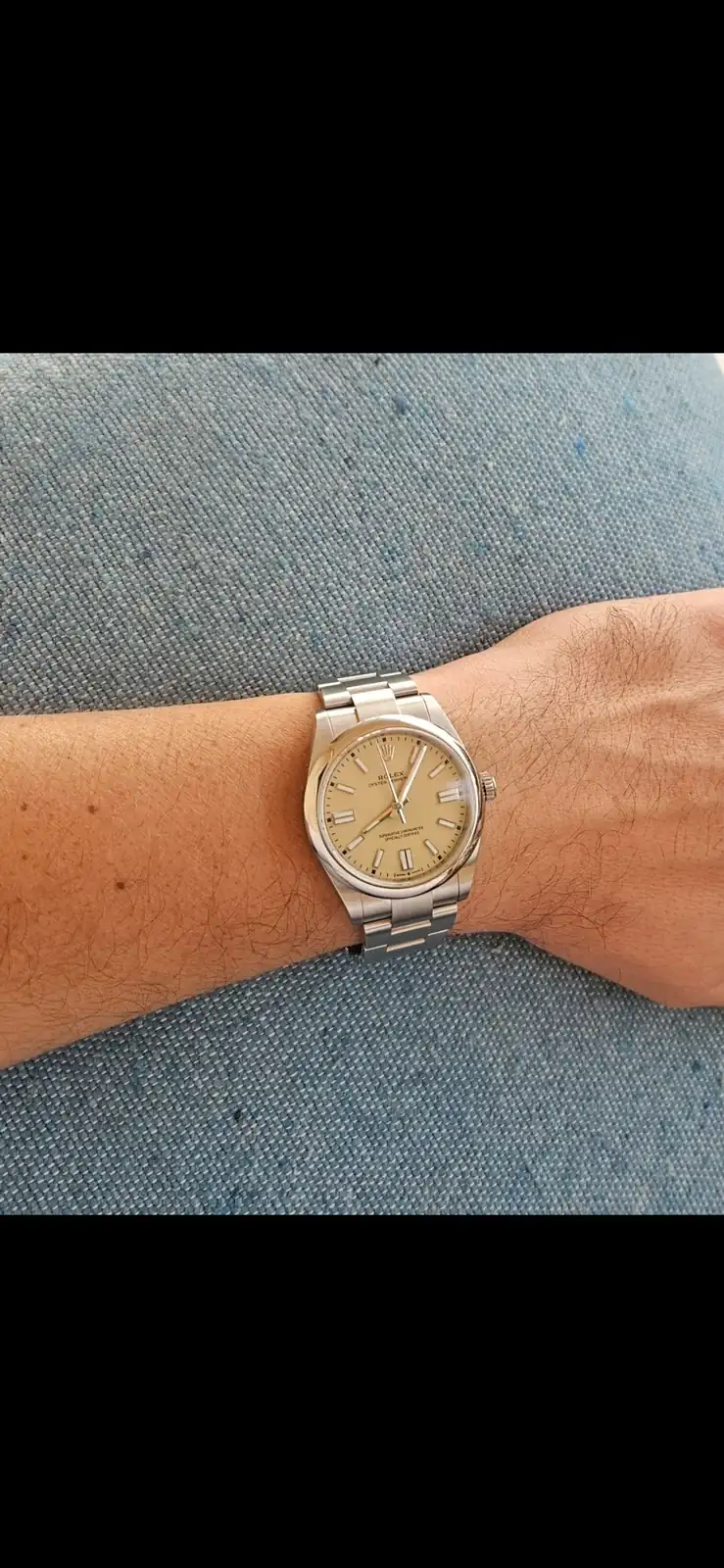 Felicidades. Ambos preciosos pero el Beige tremendoOs cuento. Llevaba muuucho tiempo esperando por un Oyster Perpetual 41. Al principio me apunté por el que tiene el dial de color plata con índices dorados ya que me pareció el más bonito, pero al cabo de un tiempo lo cambié por el de dial azul ya que es mi color preferido y nunca he tenido ninguno en mi colección. Me apunté en dos concesionarios diferentes para ampliar las oportunidades. Fue pasando el tiempo y descatalogaron el anterior azul rayos de sol por este nuevo azul que es una pasada. En paralelo, en un viaje a Oslo este verano pude visitar la tienda Rolex, donde descubrí el dial color beige del que me quedé perdidamente enamorado. Así que al volver del viaje decidí cambiar al beige en uno de estos dos concesionarios. Me olvidé del asunto porque pensaba que, como siempre, esto iría para largo. No obstante la primera semana de septiembre me llamaron por el modelo de color beige. Increíblemente al cabo de dos días me llamaron del otro conce por el de dial azul. Vaya locura! Finalmente decidí quedarme los dos y aquí os los presento.