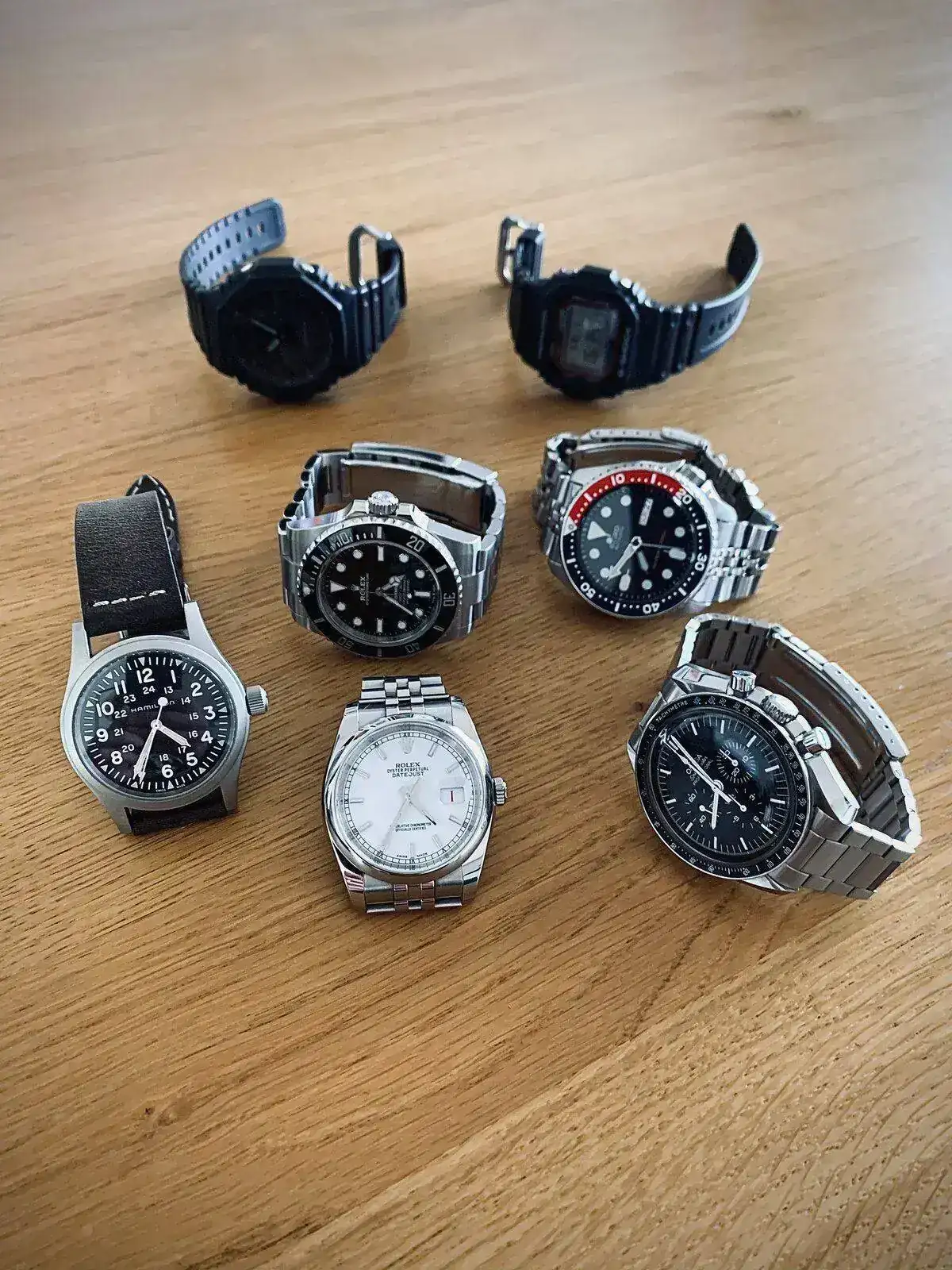Hola amigo muchísimas felicidades por tu coleccion, creo que haz logrado algo que muchos en el foro buscamos que es la reducción de piezas pero que cada una de esas piezas tenga una razón de ser y un gran valor intrínseco, al menos en mi caso tengo al rededor de 12 relojes, pero mi ideal seria tener unos 5 pero que cada uno de esos 5 fuera el mejor en su categoria, o al menos el mejor en términos valor precio, muchas felicidades