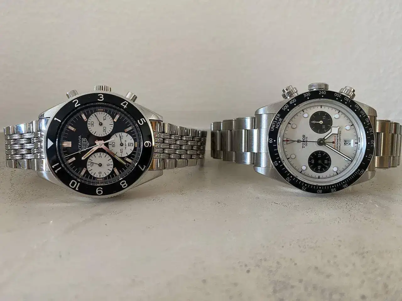 En fin, que hace un mes más o menos adquirí un Tudor BB Chrono, el cual no presente en su día como debía, aunque alguna foto al hilo diario ya puse y hoy me ha llegado su “rival” … un Autavia que hace tiempo Tag Heuer descatalogó sorprendentemente.
