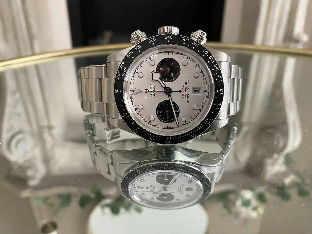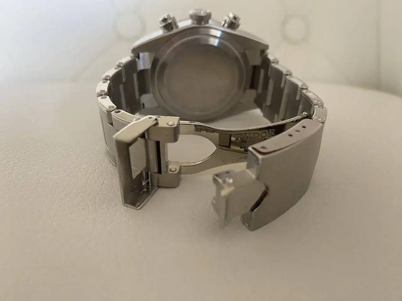 El Tudor, lleva un mes conmigo, tiene un blanco muy bonito, un fondo muy… (a lo Rolex, ya sabéis) un buen y sólido armis con unos remaches que quizá le hubieran sobrado (como esos tubos de escape falsos) y un cierre más seguro. También es verdad que es un diver?