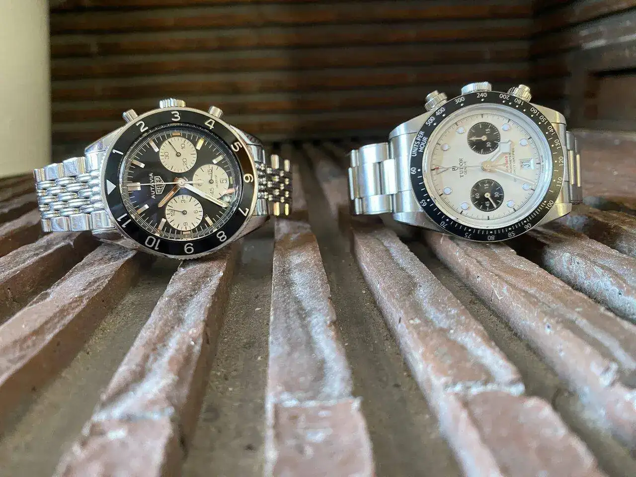 En fin, que hace un mes más o menos adquirí un Tudor BB Chrono, el cual no presente en su día como debía, aunque alguna foto al hilo diario ya puse y hoy me ha llegado su “rival” … un Autavia que hace tiempo Tag Heuer descatalogó sorprendentemente.