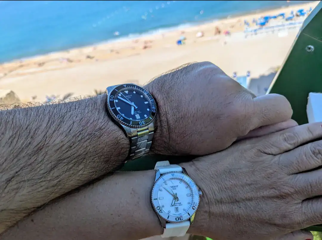Y ahora vamos a por el otro! Por nuestro aniversario, decidimos comprar dos mismos modelos, a juego. Para ella, el Seastar en 36mm. De las diferentes versiones, el que le hizo los ojos chiribitas fue el de esfera madreperla, con ocho diamantes.