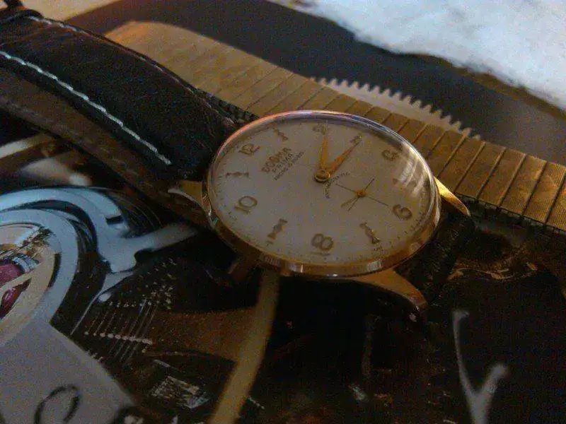 toca hacer lo de siempre, para que unos entren otros tienen que salir, muy a mi pesar le ha tocado a este Dogma, en un estado excepcional pese/gracias a sus años, la marcha es muy buena, tiene buena reserva de marcha, el calibre en un estado inmejorable con volante contrapesado, lo único que le hice al reloj fue un cambio de plexi, el que tenía estaba fráncamente mal, pero conservó la esfera casi intacta todos estos años, el chapado está muy bien y yo no lo tocaría para conservar ese aire vintage, lo entrego con una correa de piel negra, que se puede mejorar pero tiene mucho uso todavía y con la pulsera flexible ¿original? de la marca Ekoflex dorada. El precio 190€ puesto en casa por correos certificado y nº de seguimiento, dudas, propuestas indecentes, cambios y demás por privado, y sobre todo agradecer al foro por este espacio y a tí por mirar. Unas fotos.