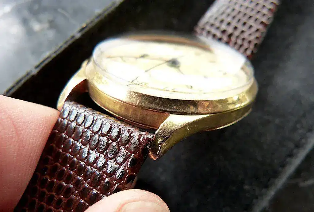 Caja de oro 18K con doble tapa y bata de latón, algo golpeada como se puede apreciar en las fotos, correa a estrenar, precio 600€ enviado!