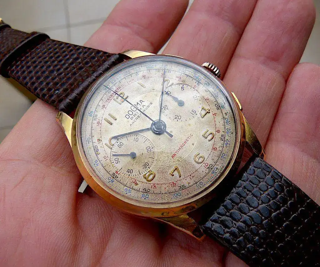Reloj en buen estado de marcha (sin revisiones recientes que yo sepa) con bonita esfera guilloché de origen muy bien conservada y sin retocar.