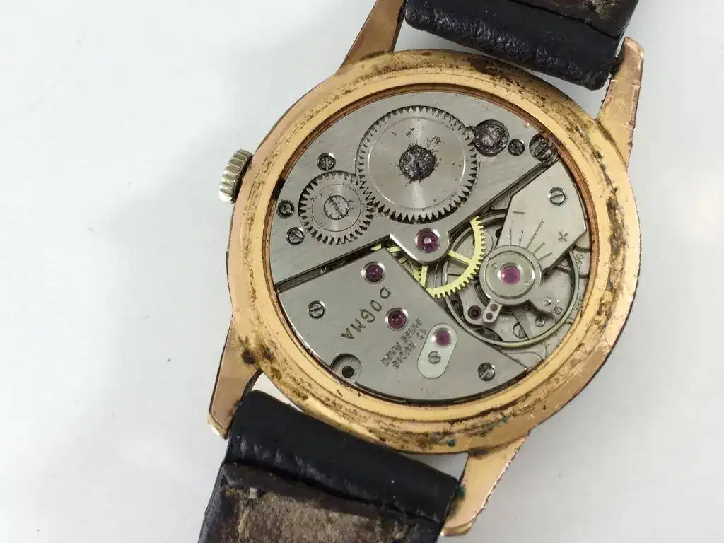 Decir que el estado de marcha es perfecto. La caja esta chapada en oro de 10 micras y el plexi tiene las tipicas marquitas que se ven sobre todo al contraluz pero que se solucionarian con un pulido.