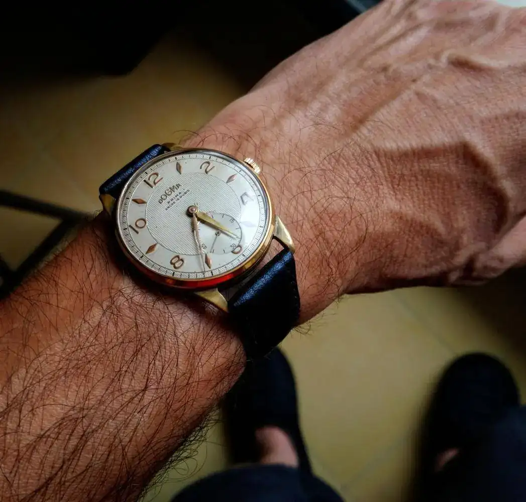 Os presento este reloj vintage recién llegado. Tiene un calibre manual FHF 26. Tiene 38 mm de diámetro.
