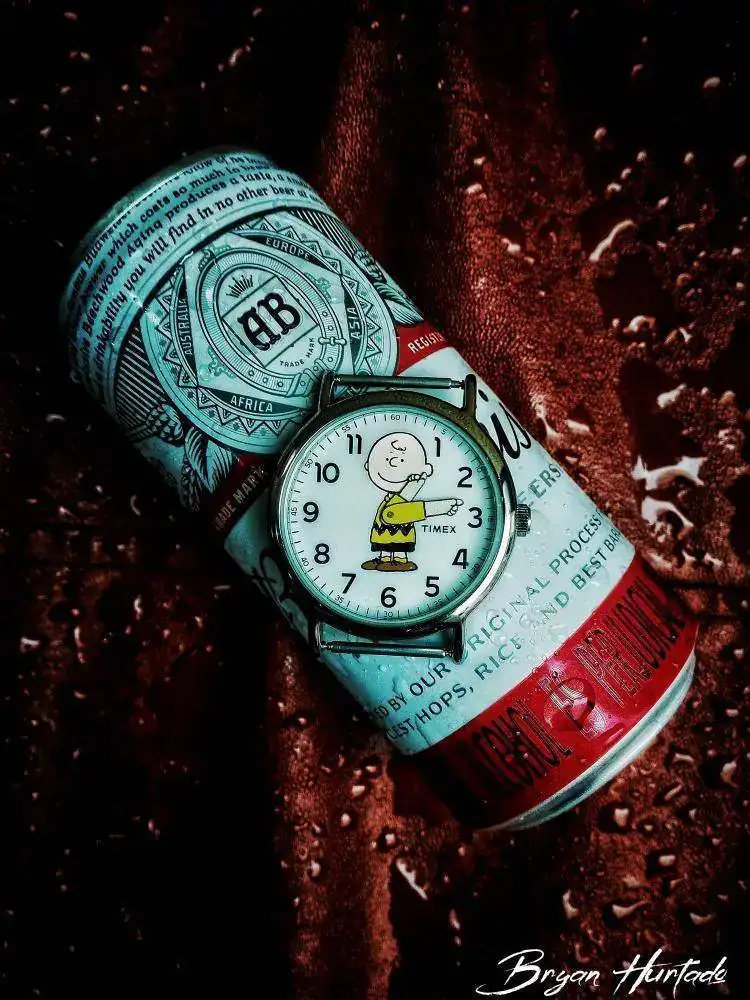 Unas cervezas para la sed, y un reloj que representa mi estado de ánimo actual.