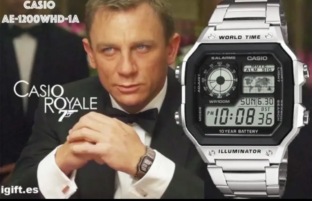 Hicieron una recreación con Daniel Craig super divertida pero la verdad es que un reloj parecido pero Seiko g757 -5000 salió en octopussy. Seguro que la mayoría lo sabéis pero quizás alguno no sepa que aparte de rolex y omega hubo varias marcas en 007: Seiko, hamilton, Tissot, Tag etc…