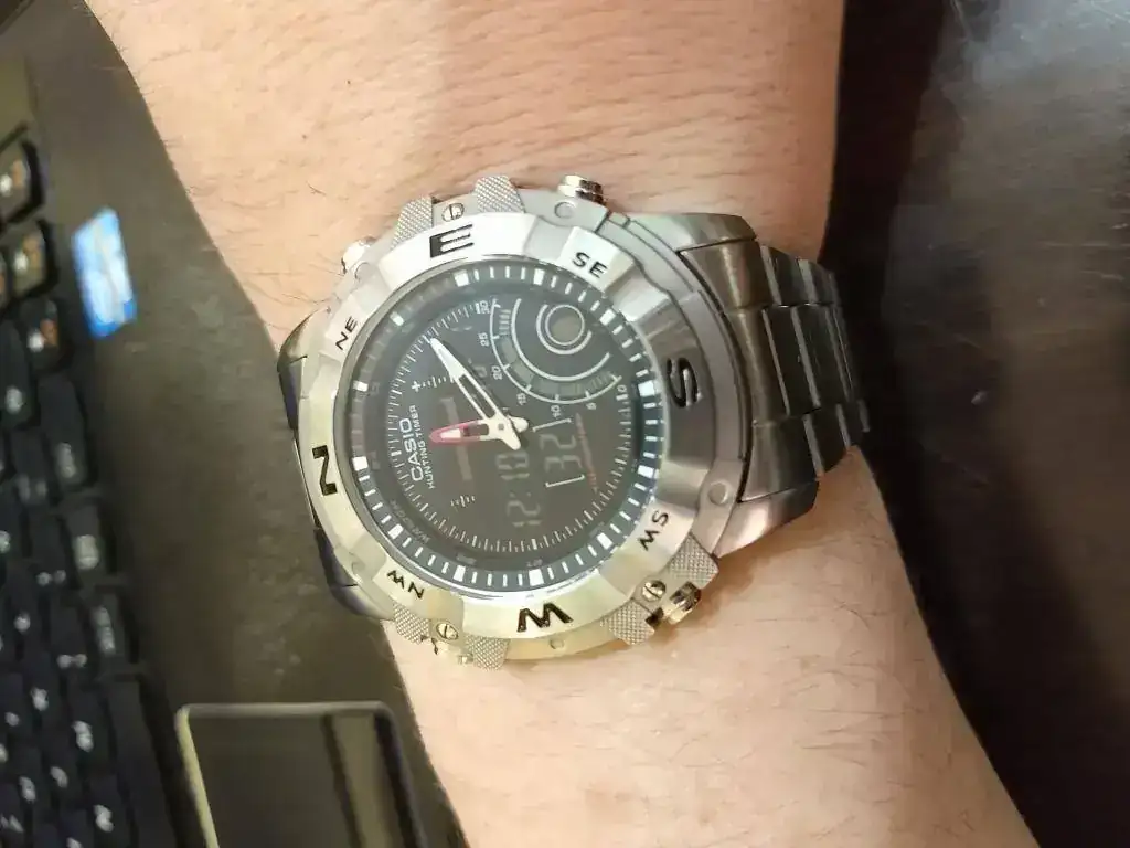 Sale un Hunting Timer de Casio, que hace unos meses pillé en la bahía. Me encanta el tamaño y diseño. Muchas prestaciones para caza y pesca (que no utilizo, obviamente, como tampoco bajo los 500 metros de algunos de mis diver´s, ya que superaria por unos 150 el record mundial en ese caso :) )