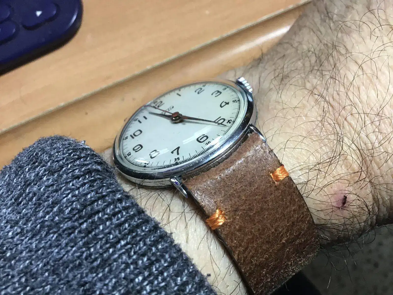Tiene la caja completamente restaurada y y hace poco lo tuve que llevar a desmontar y aceitar, en total, un pastón para este reloj, pero se lo merece por su alto valor sentimental. Aquí le he puesto una correa de cuero rústica que le da aún un aspecto más vintage de tipo militar: