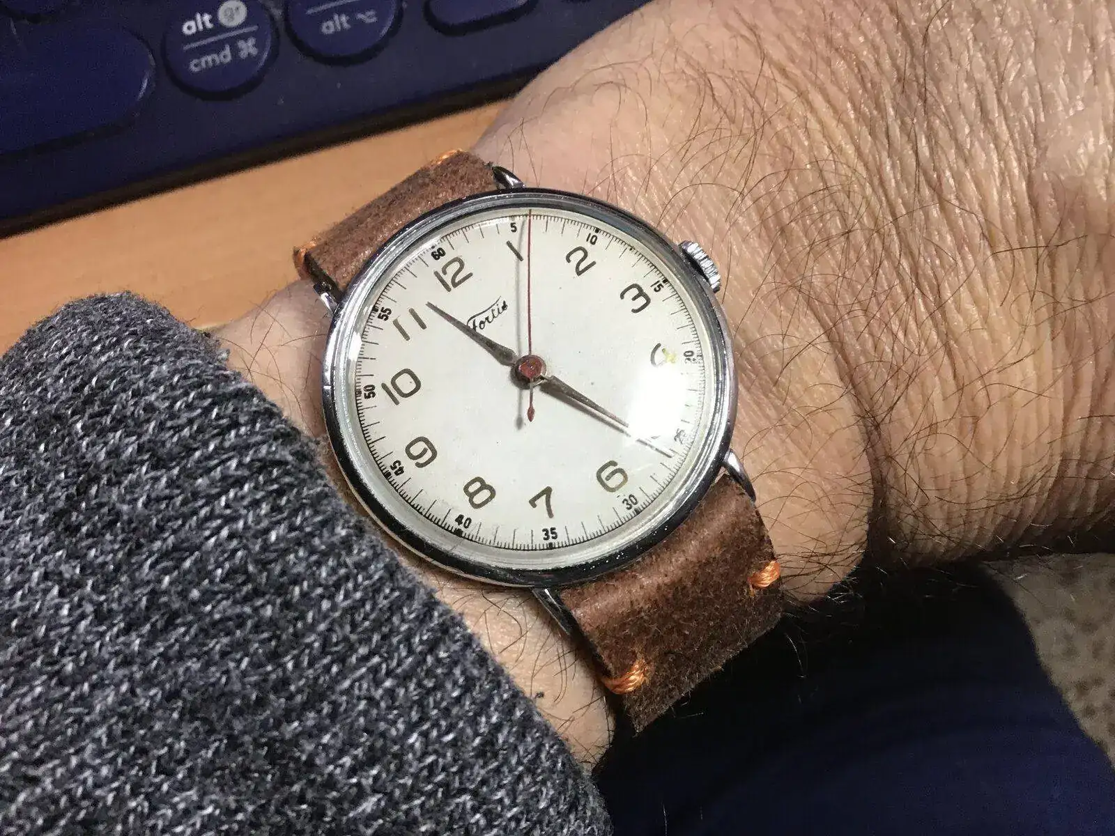 Hoy llevo puesto un Fortis vintage, que para aquella época quizá era más para hombre, era de mi madre, que era maestra y le gustaba llevar relojes en los que pudiera leer muy bien la hora.