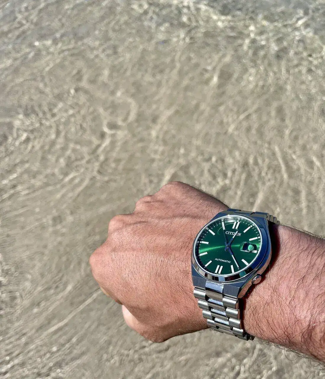 Precioso , un relojazo !!!Nada mejor para una mañana en la playa citizen Tsuyosa green dial 🌊🌊🌊🌊🌊