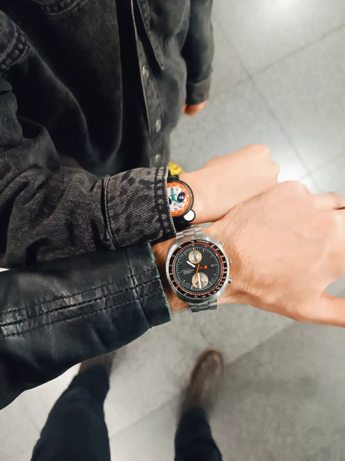 La primera foto me parece de auténtico genio, conjuntando relojes y look. Inculcando nuestra afición relojil a las nuevas generaciones.