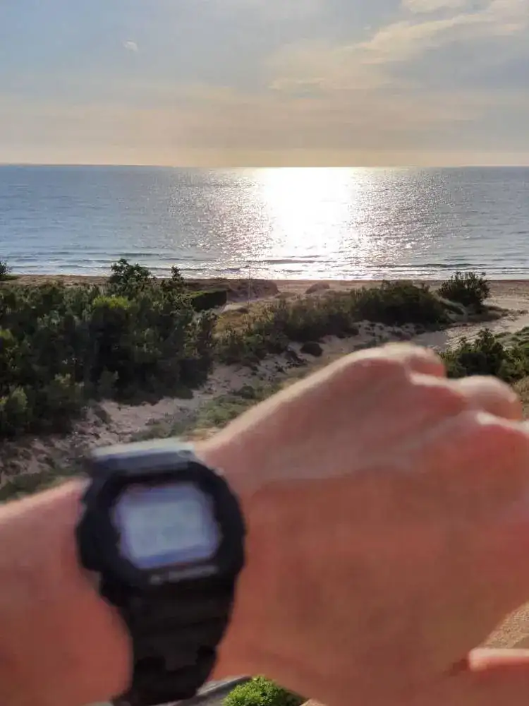 Sencillo, un reloj y una puesta de Sol