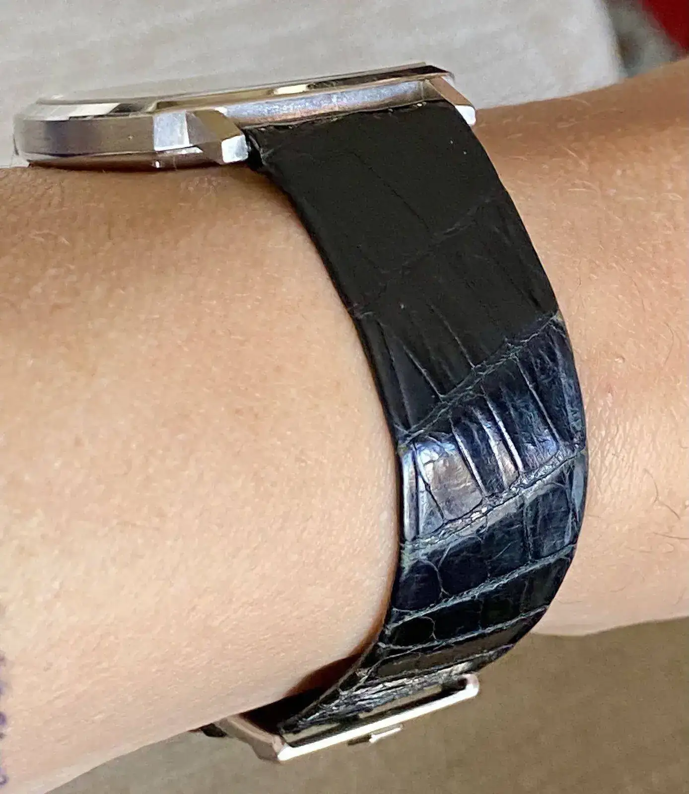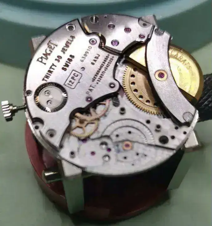 ¡Muy bien visto! Efectivamente, la correa es la original. Delgadísima. Y ahí tienes foto hecha en la última revisión del movimiento 12PC ("C" de calendrier). Y de la correa. Con 2,3mm de grosor, en su día fue el movimiento con calendario más plano del mundo. Hoy sigue siendo planísimo. Ya tenía cristal de zafiro. Y lo más impresionante para la época era el empleo de un micro-rotor de oro de 24k en un calibre ultrafinoMuy bien y con la primera correa de antes. El P12 es un calibre historico, es del 1959 !!