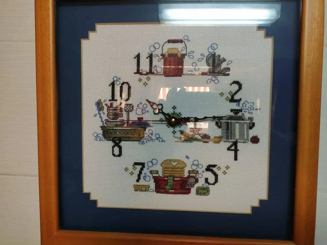 Muy bonito!!!felicita a tu madre 👏👏Bueno, pues a falta de tres días para Navidad, se acabó lo bueno. Este reloj de cocina está bordado en punto de cruz por mi madre: