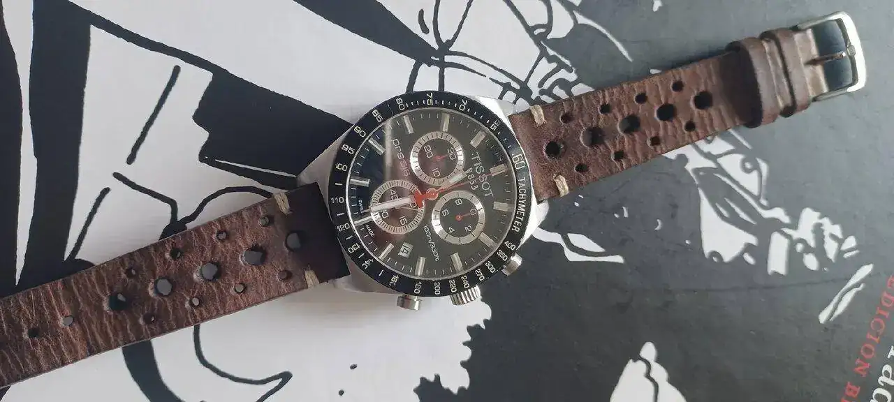 Bien bonito es y la correa le queda genial!!!a disfrutarlo.yo llevo días con este tissot de cuarzo que llevaba años sin salir de la caja, ya prácticamente deshauciado; ha sido cambiarle el armis por esta rios tipo 'racing' y cobrar una nueva vida. qué cosas.