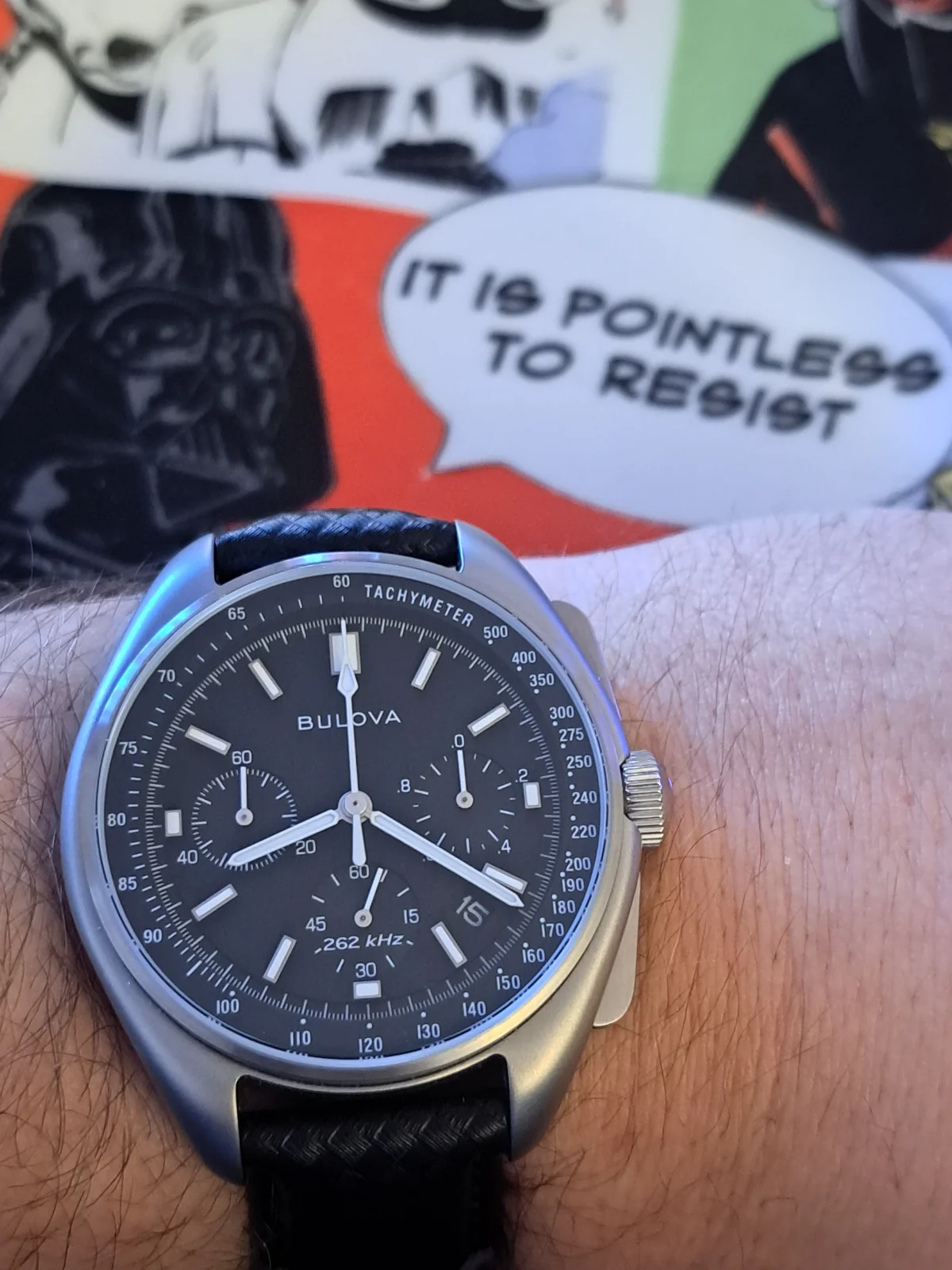 Muy bella pieza, Reina¡Buenos días! Y llega la década de 1970 en Movado, con este setentoso Kingmatic Vídeo, de corazón acelerado a 36k pero sin ajuste rápido de fecha😬