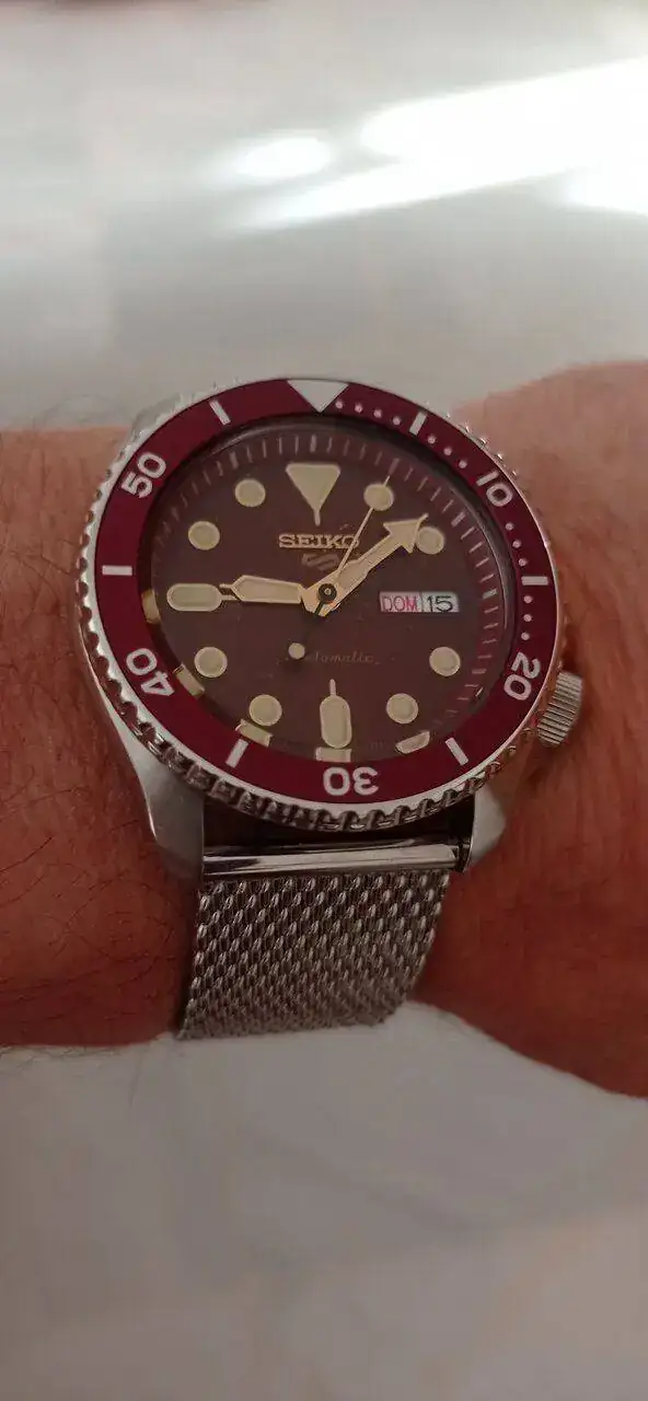 Rojoooo !!!. Este modelo de Seiko 5 y la milanesa, junto con el verdecito. Muy chulis.