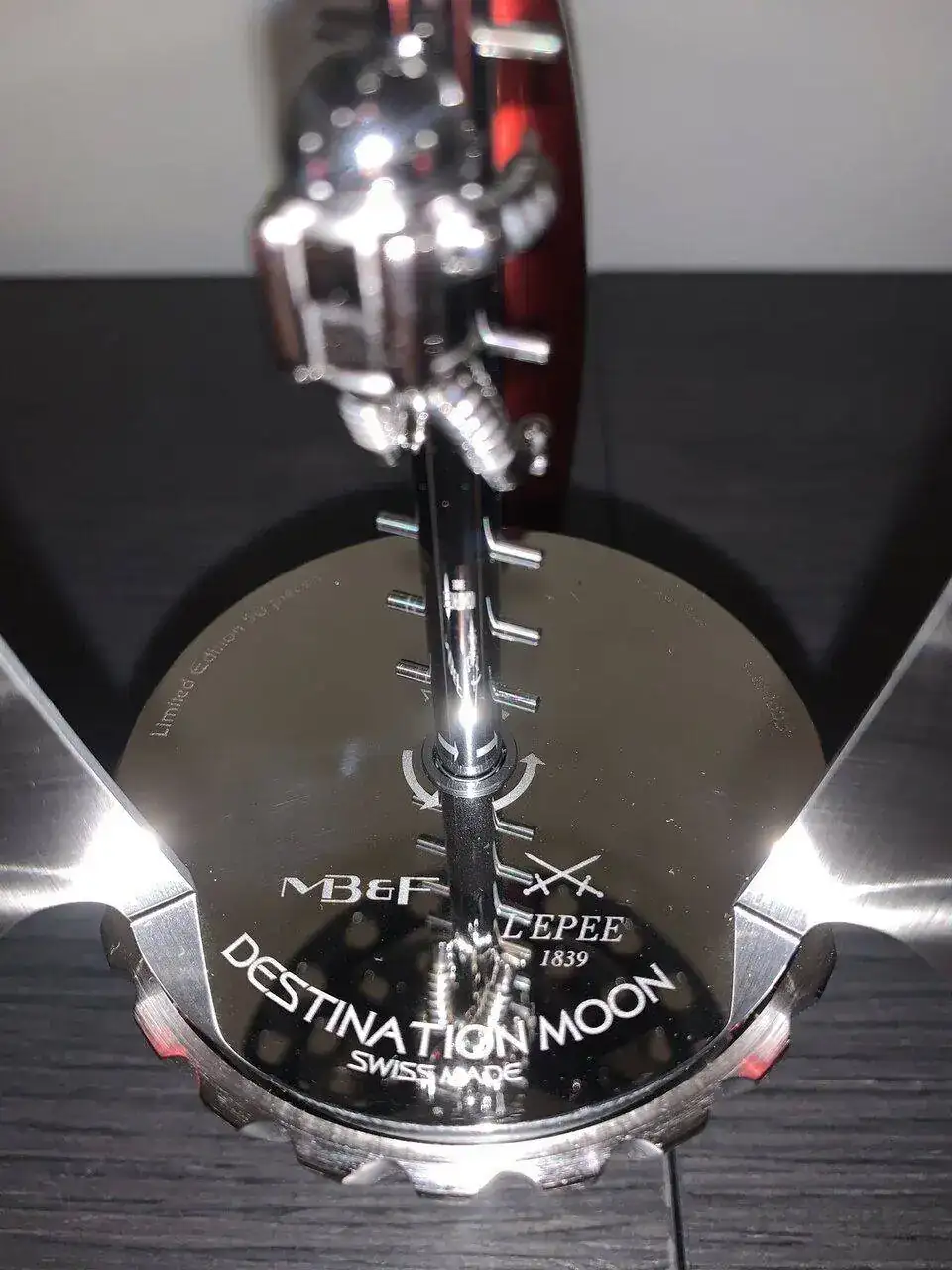 Leída esta frase tuya te paso fotos de un modelo de reloj de Alta Relojería de MB&F que está basado en ese cohete (lleva hasta a Tintín vestido de astronauta subiendo la escalerilla…). Ojo, qué mide medio metro de alto!