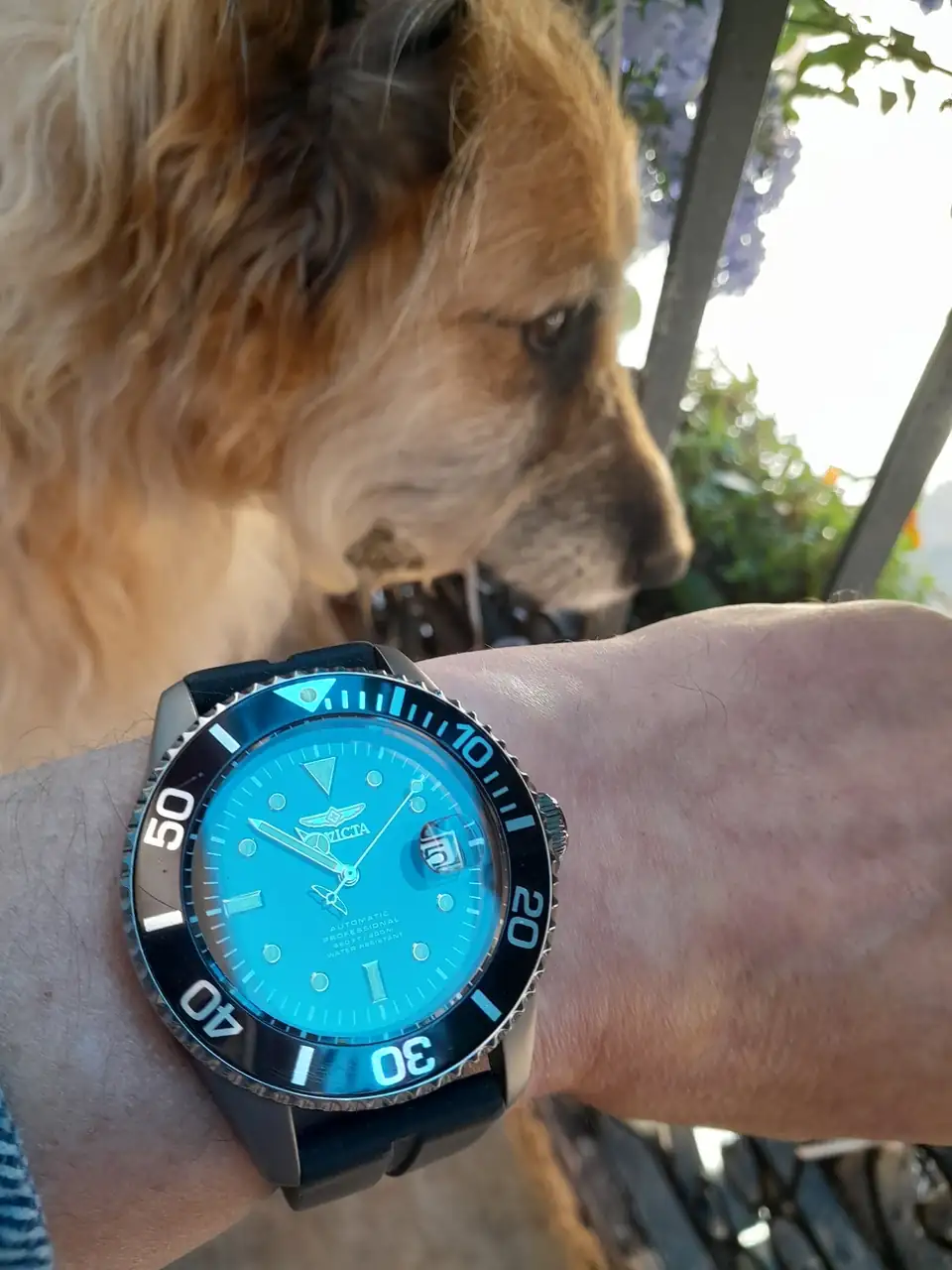 Aquí la reina de la casa y el reloj del petardo de su dueño... mirando por el balcón... vaya reflejo mas chulo ha salido en la esfera...Ver el archivos adjunto 2909652
