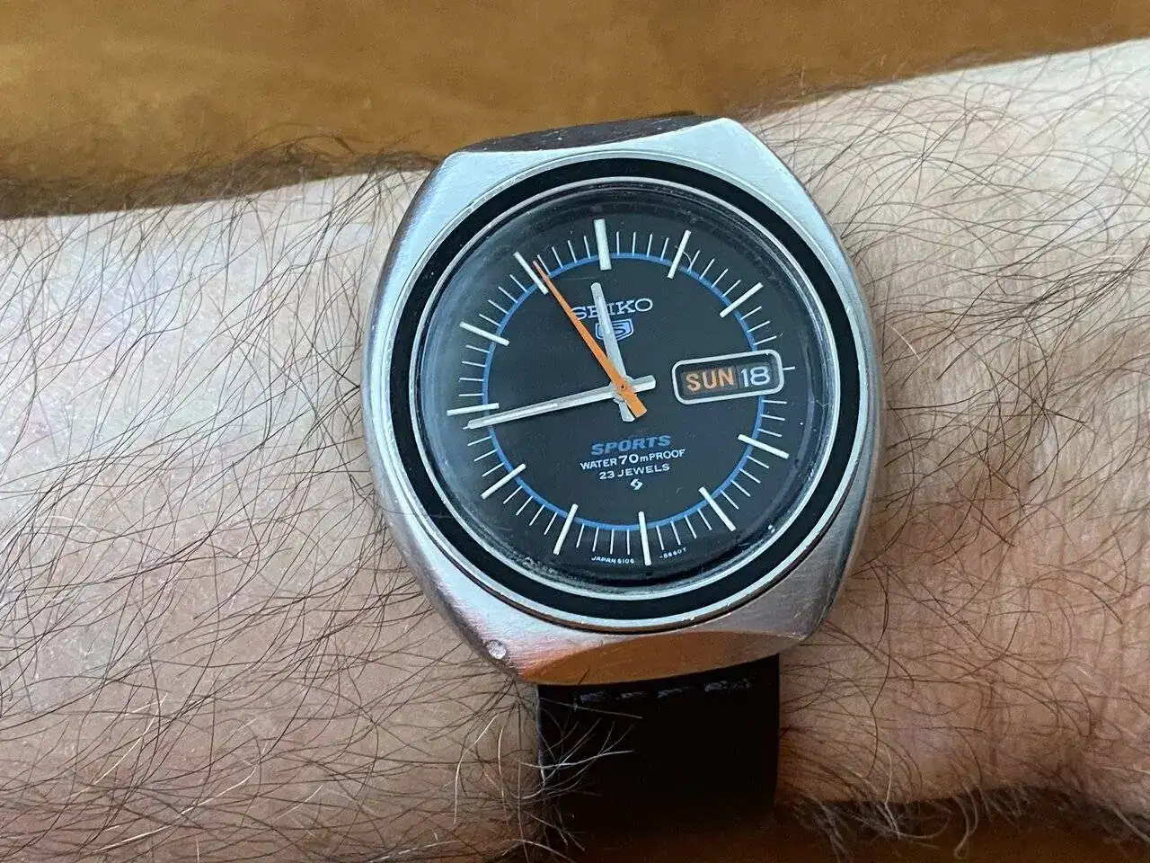 Es impresionante el estado en el que está y con ese encanto adicional de tener su estuche. Qué bonito y vaya diseño y colores para la esfera. Sin duda... cosas de otra época![]()