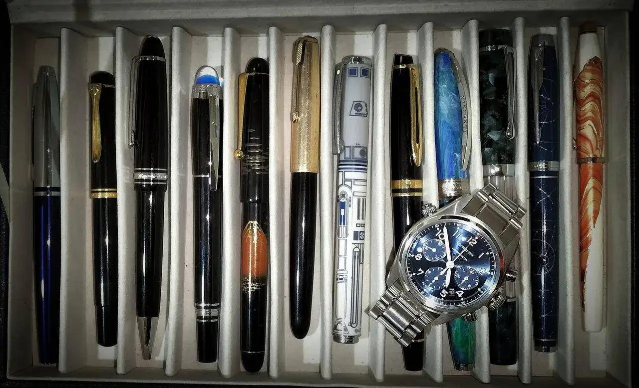 Con unos bonitos elementos de escritura.