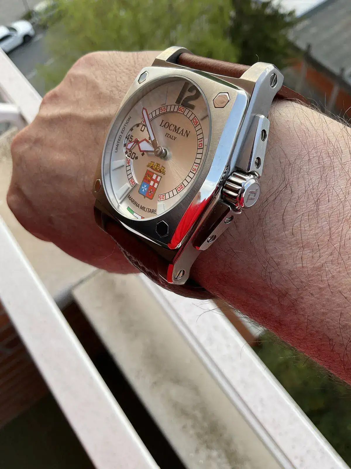 Luce muy chulo este reloj y se ve una exquisita pieza. Realmente está "COMO NUEVO" incluso sin domar la correa !Buenos dias,hoy desempolvo mi reloj de bitacora,otro Teseo Tesei,esta vez manual,acero y titanio,sub 300(sin corona a rosca😳)y caja cuadrada de solo 50 milimetrines de lado,en correa de piel italiana grabada de 28mm de ancho.Una cucada