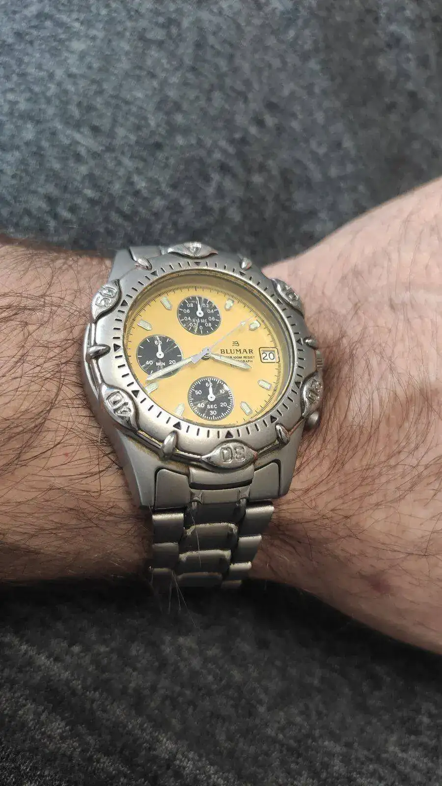 Esos son los mejores, muy noventero!Hoy con mi primer reloj, me lo regalaron mis padres en los años 90 y aquí sigue como un campeón. Se trata de un Blumar de titanio con la esfera amarilla, no os podéis ni imaginar el cariño que le tengo... Feliz Domingo!