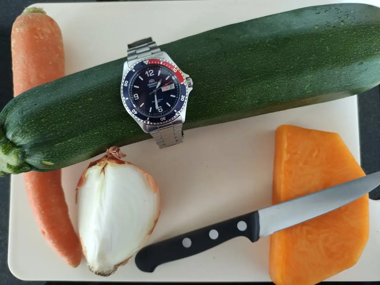 Bonito bodegón.Este diver queda bien en cualquier sitio. Y el bisel como siempre, para cocinar.