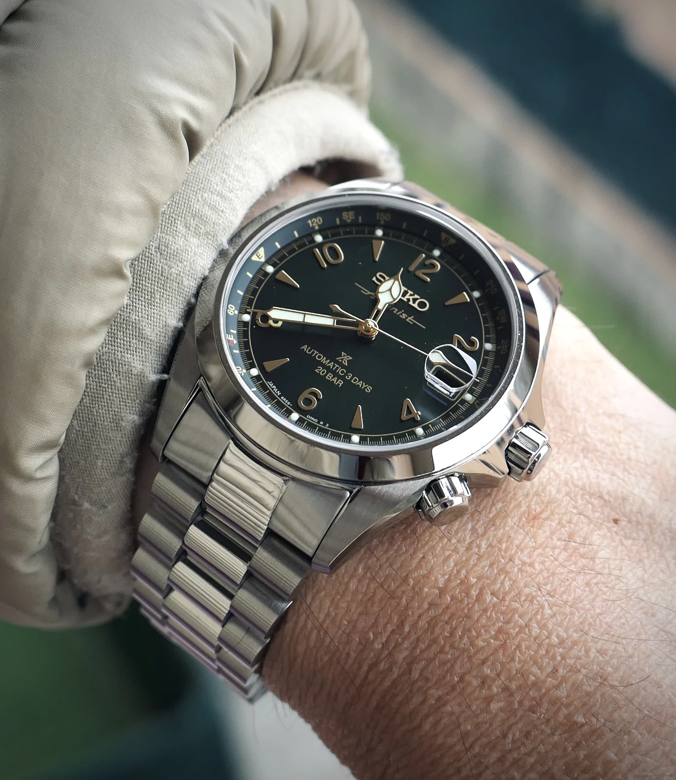 Curiosamente, con el mismo brazalete macizo (es una gozada como se “pega” a la muñeca) pero diferente cierre: el tuyo lleva clasp y el mío un broche.