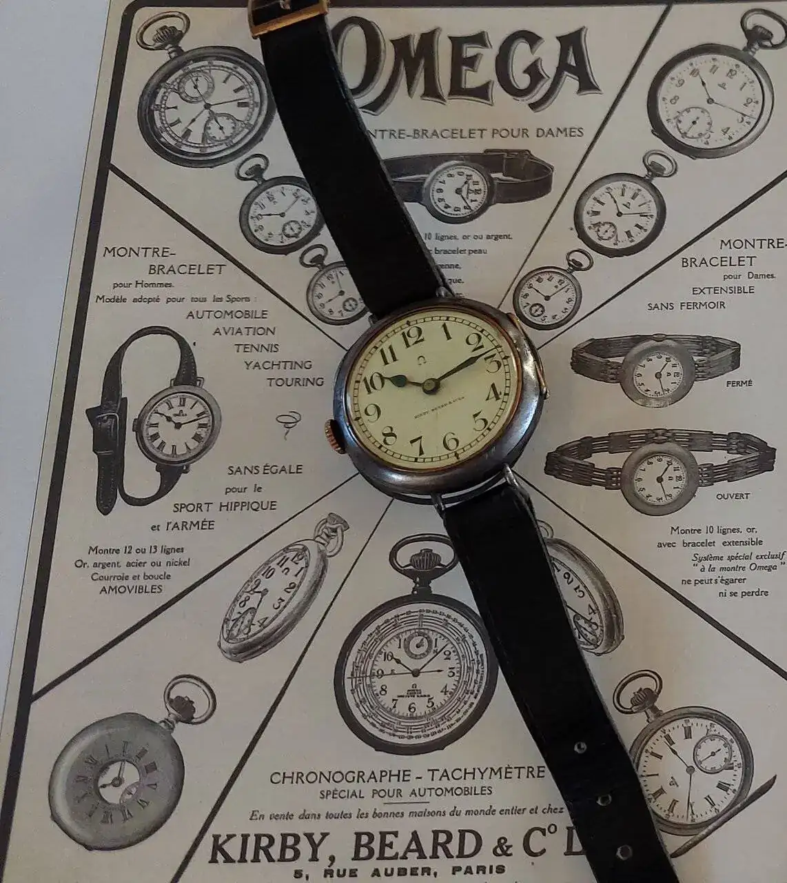 Retailed Kirby Beard, importante distribuidor de Omega en Paris. A la izquierda uno similar con números romanos.