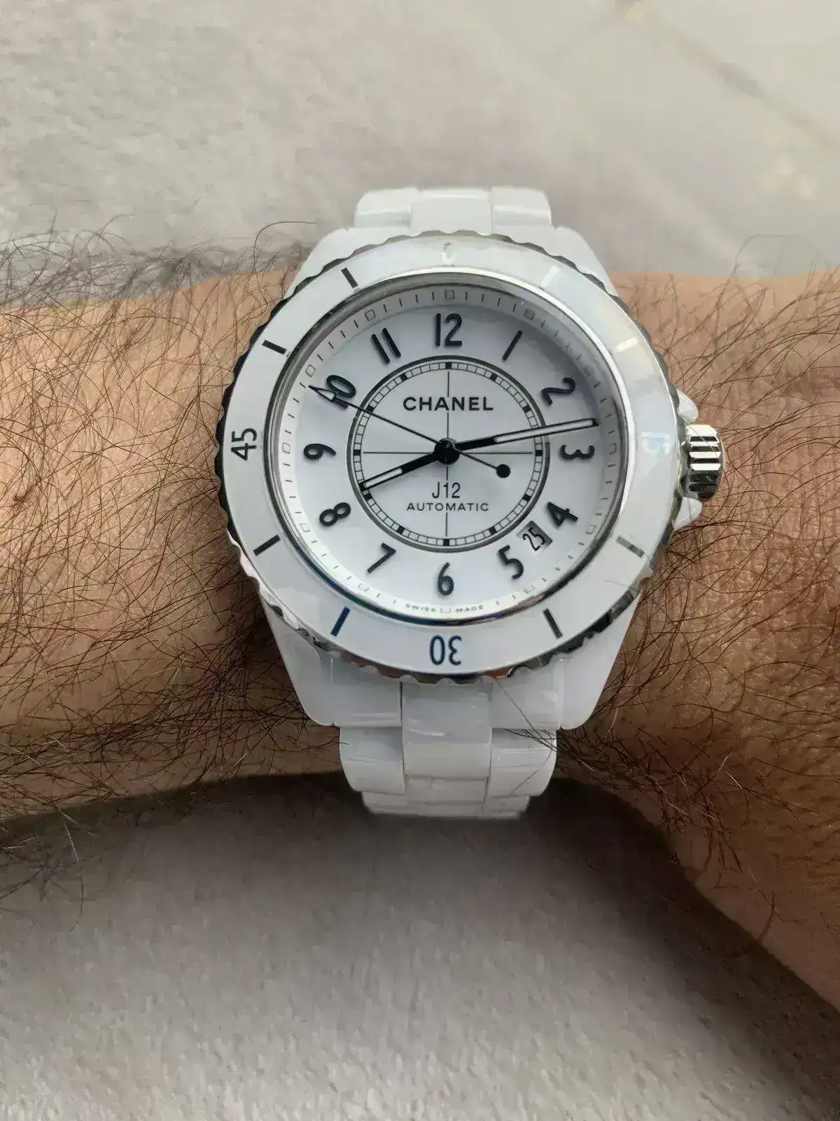 Jajaja! Tienes toda la razón en lo de que no queda muy lógico ese nácar brillante sobre un brazo con tanto pelo. Mi mujer se parte también de risa. La verdad es que es una medio bravuconada que me marqué y la tengo que cumplir. Hoy es la primera comunión de mi ahijada y le dije iría con algo a juego a su vestido. Como no tengo el valor de ir con un traje blanco se me ocurrió lo del reloj. Y creo que al menos cumplo, y es muy cómodo. Tiene un cierre tipo imanes que yo desconocía y me ha hecho gracia también.