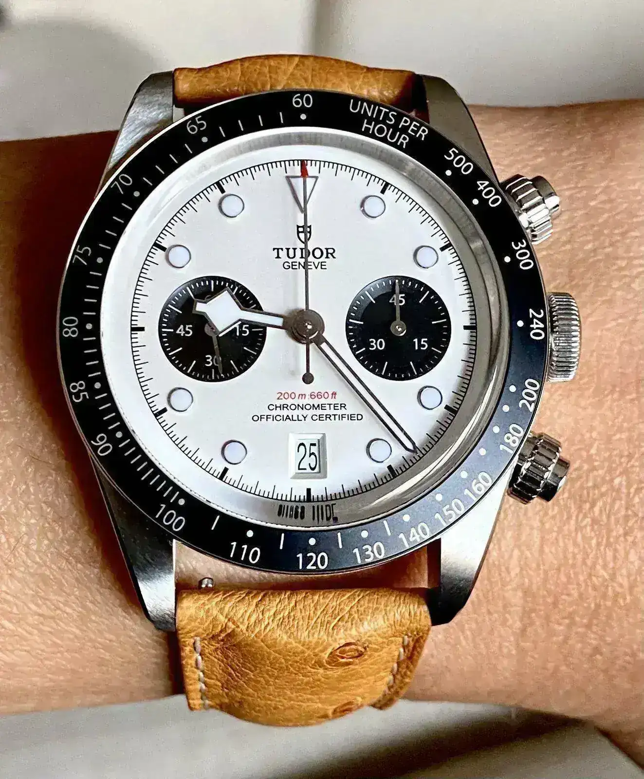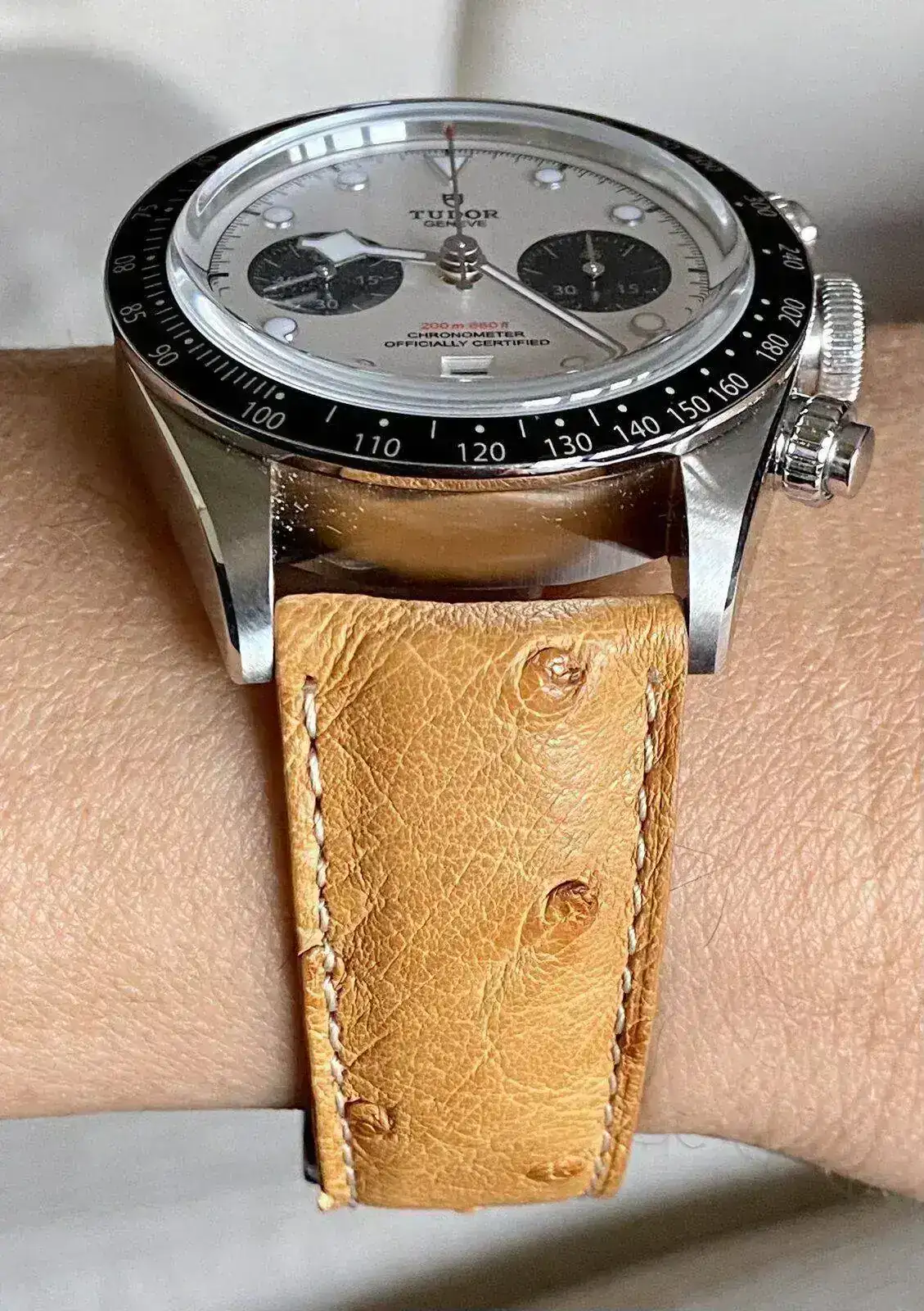 Precioso!!! Recoge todo el espíritu del Daytona clásico. Y la correa le queda de maravilla👏👏👏👏Seguimos jugando. Cinturón de avestruz. Arreglado pero informal... Salud que tengáis, compañeros!