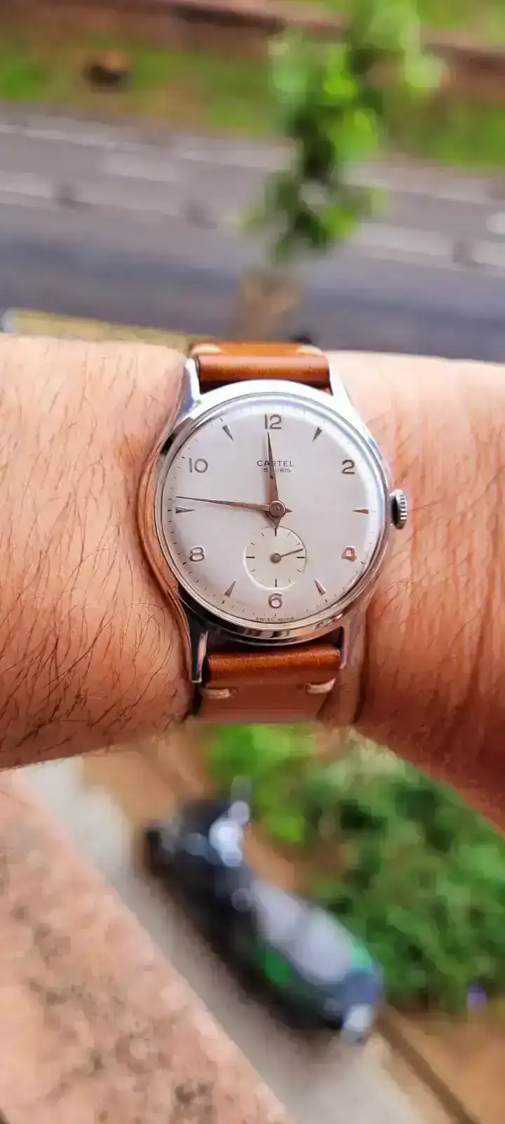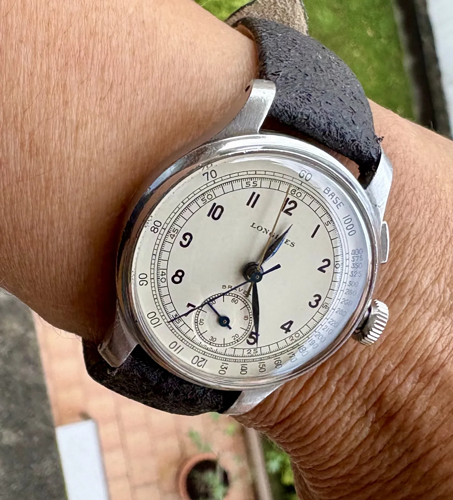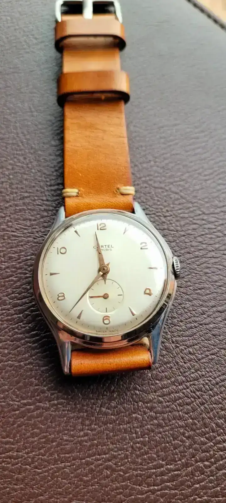Hoy me he puesto éste en homenaje a mi padre, no es gran cosa, gama baja de los años 60 con caja de aluminio, lo llevé a restaurar hace unos años y al cabo de un tiempo tuve que volver al mecánico porqué se rompió el eje del volante pero bueno hay está para sacarlo a pasear de vez en cuando, cargado de intangibles.