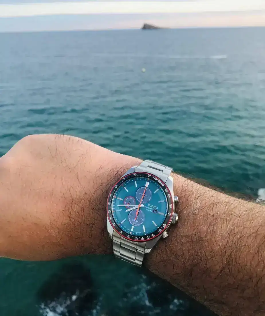 De vacaciones estoy todo el añoBuena playa y reloj.