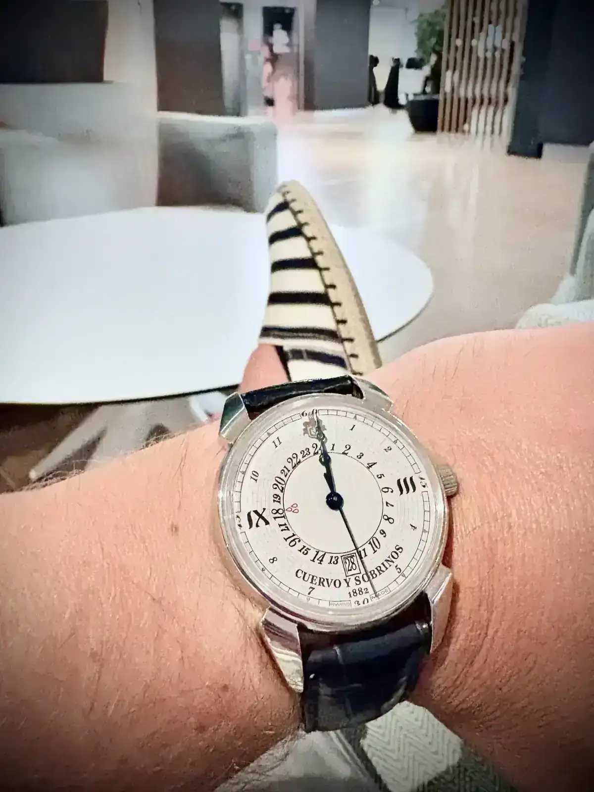 Hoy me permito el lujo de iniciar hilo diario. Hoy día 28 es mi aniversario de boda, y como no, empiezo el día con el reloj que me compré para la ocasión. Dejo foto de ahora mismo y algunas del día de la boda con el reloj.
