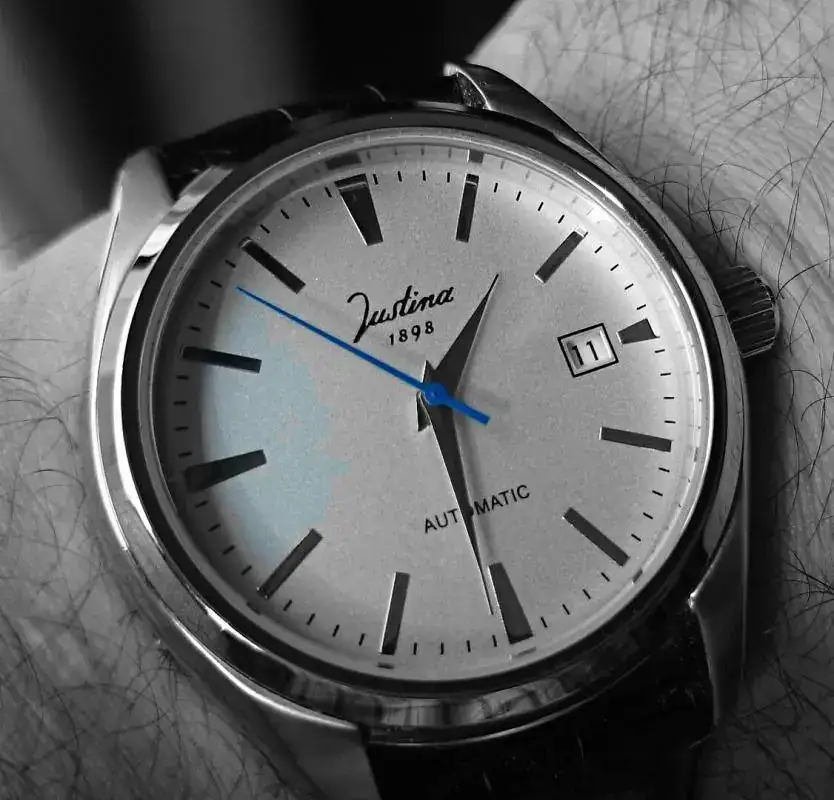 Un reloj al que no le hacen justicia las fotos, con una caja pulida y cepillada de una manera soberbia, aguja de la reserva en oro, un segundero casi invisible sobre la apertura, la mejor correa de piel que he tenido o visto en algún reloj... Es para mi el mejor reloj que he tenido propio o al alcance de la mano ...