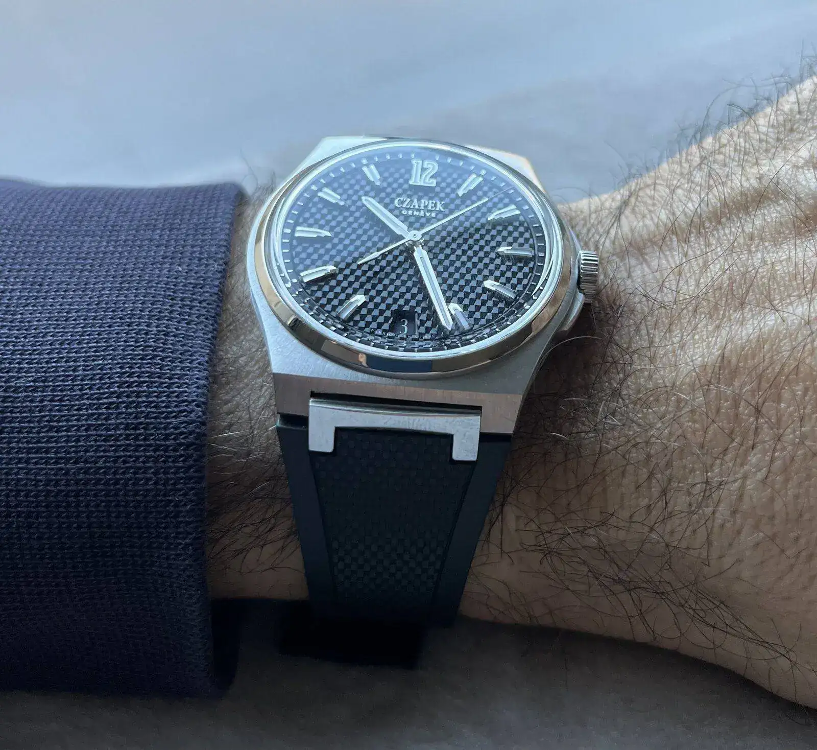 El caucho también le queda fetén !!. Qué bonito todo... esa esfera y esos índices, y la historia que hay detrás de cada uno de tus relojes... que suelo leer siempre que presentas alguno. Saludos !Feliz domingo!