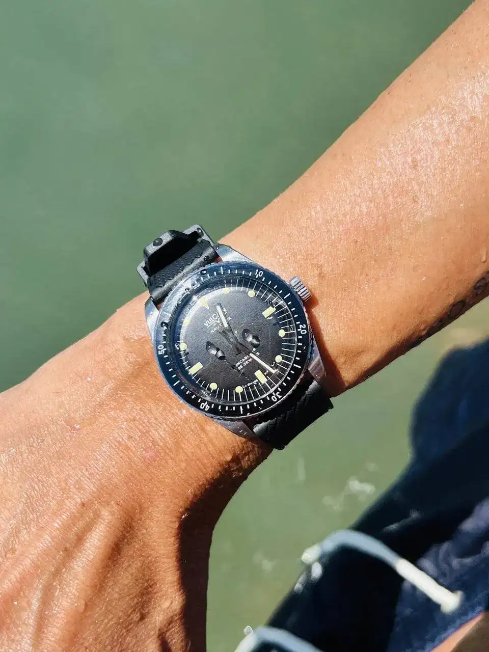 Os presento aquí mi primer reloj automático tamaño "cadete" (34 mm) esta denominación no es muy familiar para los mas jóvenes, hace unos cuantos año nuestras familias solían darlos como regalo por motivo de una comunión, finalización del Bachiller Superior, graduación etc. este como podéis observar ha pasado por muchas batallas y nunca mejor dicho porque en verdad ha sido su realidad, aun estando tan deteriorado funciona perfectamente para que veáis que lo que decimos los mayores de que los relojes antiguos son mas fuerte que los actuales tiene su cierto grado de verdad, me he propuesto averiguar bien enviándolo a la casa Certina o algún relojero que se atreva para su restauración, si entre vosotros hay algún valiente que viva en la provincia de Barcelona o Murcia se lo dejaría encantado.