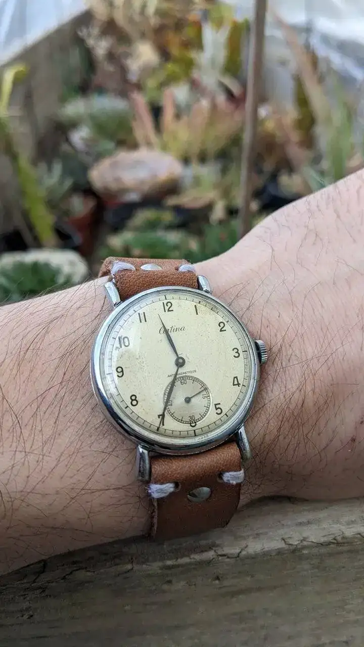 Hoy este Movado de los 40, esfera bicolor con el cristal original marcado Labor aún visible y cargado de intangibles de los buenos...