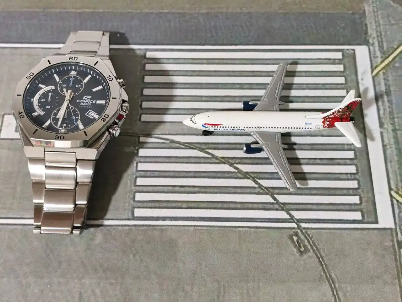 Gracias por la ilustración. Interesante.Casio Edifice y Boeing B737 de British Airways.