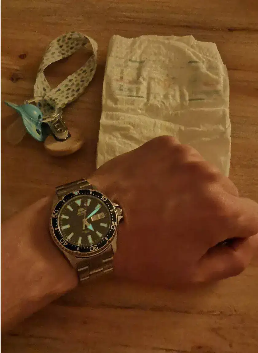 Mi único reloj con lume decente, para orientarme a esta hora sin Dios