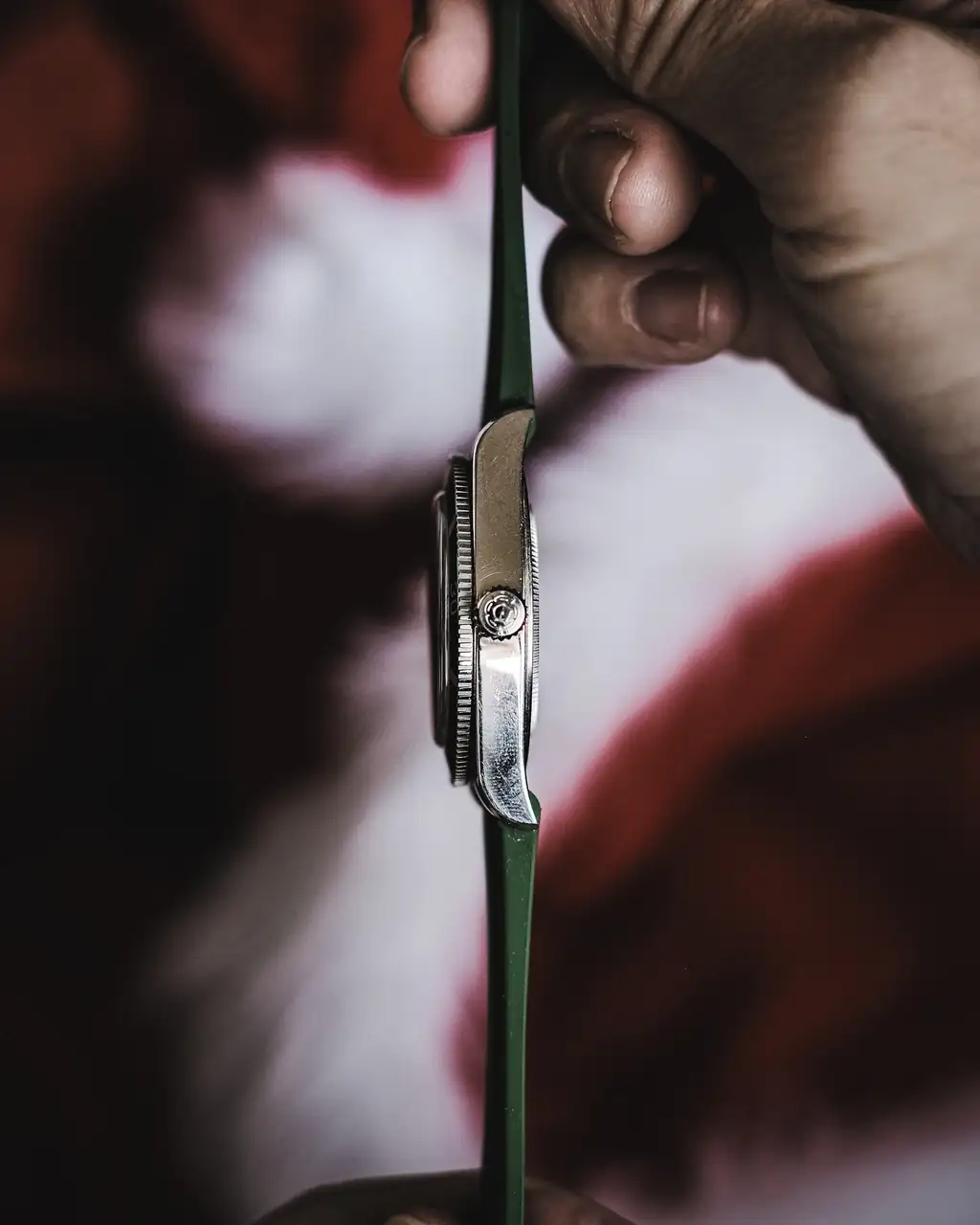 Solo tiene 33 mm de diámetro sin corona, pero una vez puesto no lo veo tan pequeño, quizás la ausencia de números e índices en el dial hace que parezca más grande.