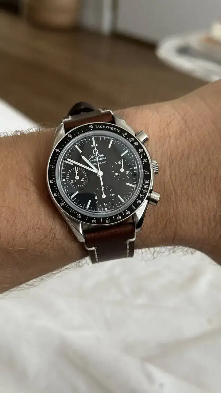 Que bien le sienta la piel al Speedmaster.