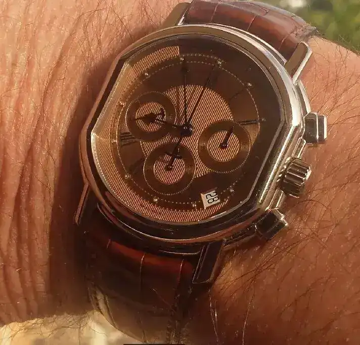 Aprovecho y te contesto aquí para no subir el hilo de ayer: gracias por apreciar la pátina del Jubileum. Tienes razón en que le pega llevar un martillo, pero no; monta un calibre 27, de remonte manual.